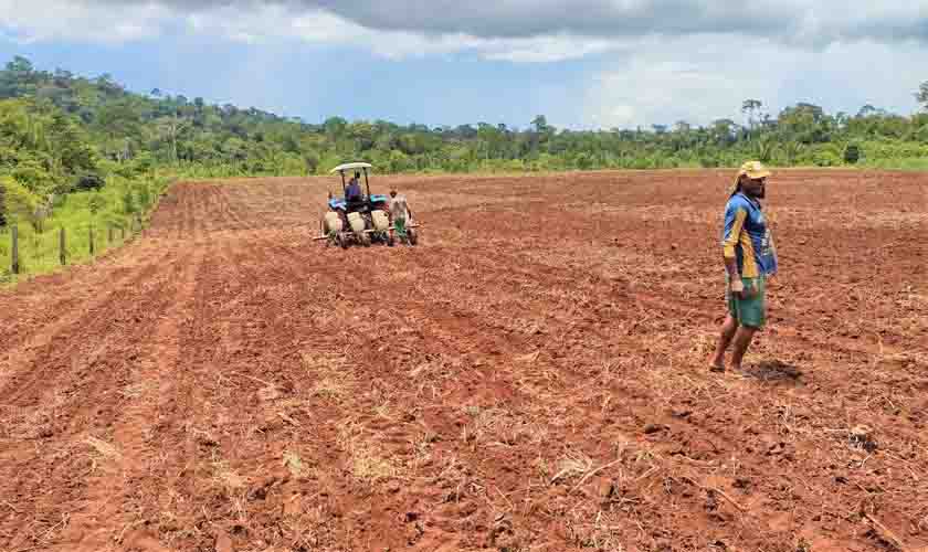 Outra frente de trabalho é desenvolvida no Assentamento Migrantes, na RO-257, na propriedade do senhor Camilo Praça, o agricultor recebe apoio da Semaic, que disponibiliza maquinários para o preparo da terra. Na localidade, com o apoio do programa, foram plantados cerca 3 hectares de milho, os quais serão usados na fabricação de silagem.
