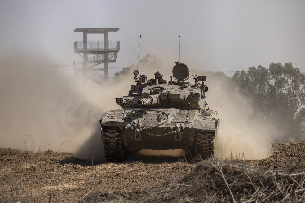 Tanque israelense opera na fronteira da Faixa de Gaza — Foto: Tamir Kalifa/The New York TimesÀ medida que as forças terrestres israelenses limpam áreas do sul de Gaza, Mulroy disse que os soldados provavelmente usariam aplicativos de mensagens criptografadas para alertar uns aos outros sobre novas táticas, técnicas ou procedimentos que o Hamas está usando.