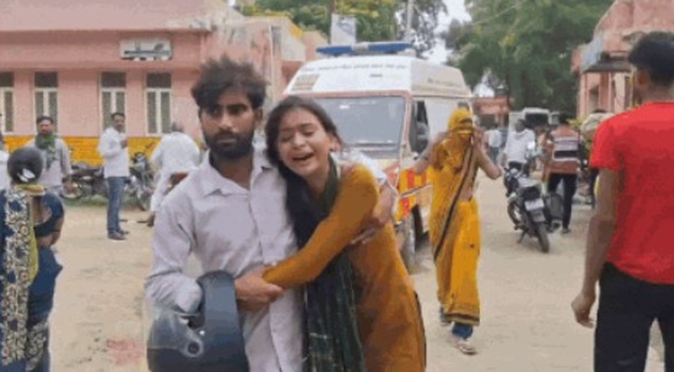 Mulher chora ao ser resgatada — Foto: ReproduçãoVídeos nas redes sociais mostraram corpos empilhados no chão do lado de fora de um hospital local. Uma testemunha disse ao India Today que havia uma saída estreita no local e que, "quando tentamos sair em direção a um campo, de repente começou uma confusão, e não sabíamos o que fazer. Muitas pessoas morreram".